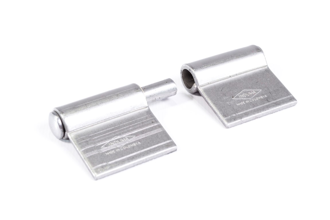Fabricada en lamina de acero hot rolled, para instalar y soldar en puertas metalicas, portones, puertas de gara y rejas, con arandela para evitar desgaste en ambas alas. las alas son mas anchas para mejor aplicacion de soldadura.