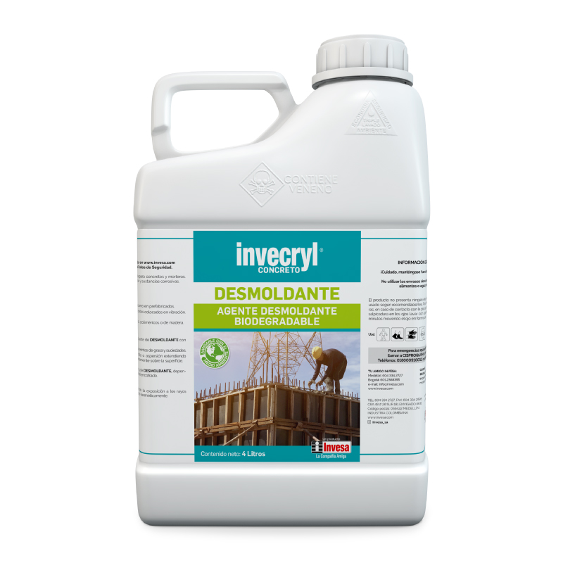 Es un agente desmoldante formulado a partir de materias primas vegetales que permite efectuar un fácil desencofrado mejorando la calidad del acabado superficial. Producto biodegradable, no tóxico, base agua, libre de solventes y sustancias corrosivas. Forma una barrera inerte que evita la adherencia del concreto o lechada con la superficie del encofrado. Permite lograr superficies pulidas, sin irregularidades, evitando la formación de burbujas de aire y manchas, mejorando el aspecto y acabado superficial del concreto y mortero. Facilita la limpieza de los moldes aumentando el tiempo de vida útil.