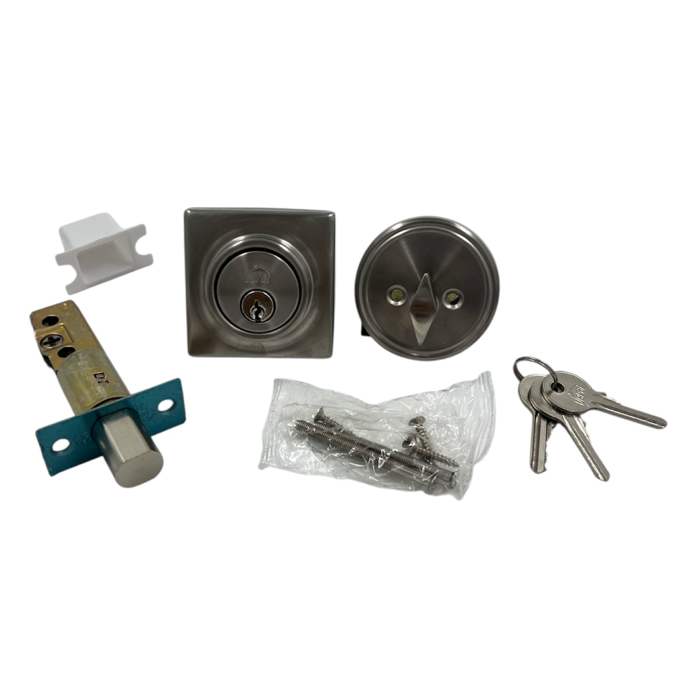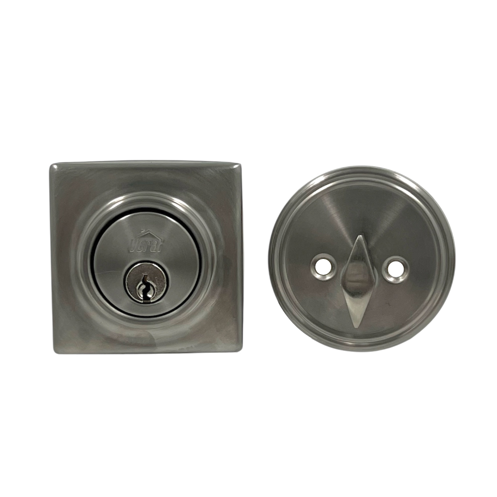 "Cerrojo de uno o dos cilindros fabricado en acero inoxidable SS201, con diseño moderno de líneas cuadradas. Equipado con carcasa de aleación de zinc y tapón de latón macizo para mayor resistencia y durabilidad. Incluye 3 llaves de latón.El pestillo es ajustable con retroceso de 60 mm a 70 mm y cuenta con cara de 1,2 mm de espesor. Apto para puertas de 35 a 45 mm de grosor.Ideal como refuerzo de seguridad para entradas principales, este cerrojo ofrece una solución confiable y estética. Su diseño compacto permite una instalación sencilla y su acabado aporta un toque contemporáneo a la puerta."