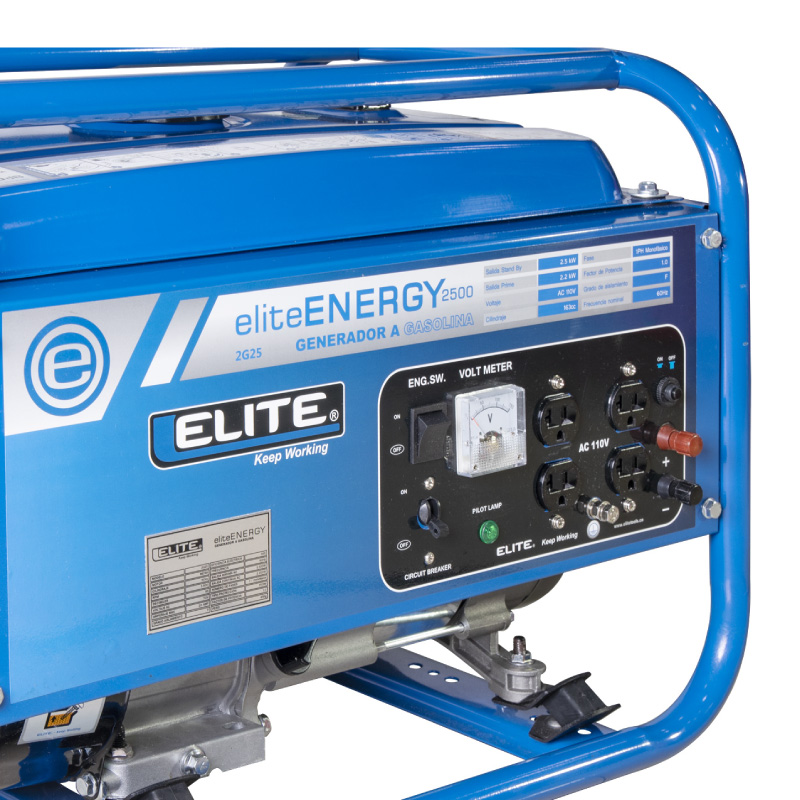 Generador eléctrico a gasolina 2,500 W es ideal para uso profesional. Ofrece voltaje de salida AC 120V, con 2.500 W máximo y 2.200 W óptimo. Su motor es de 4 tiempos con aire forzado, con 5.5 HP a 3600 rpm y cilindraje de 163 cc. Cuenta con arranque manual y un tanque de 15 litros, lo que permite mayor autonomía. Opera con corriente de 20.8A, frecuencia de 60Hz y nivel de ruido de 68 dB. Es monofásico, factor de potencia 1.0. Su peso es de 43 kg y está protegido por una jaula tubular de acero que facilita el manejo. Tiene 1 año de garantía y cuenta con respaldo en los Centros Fixer.