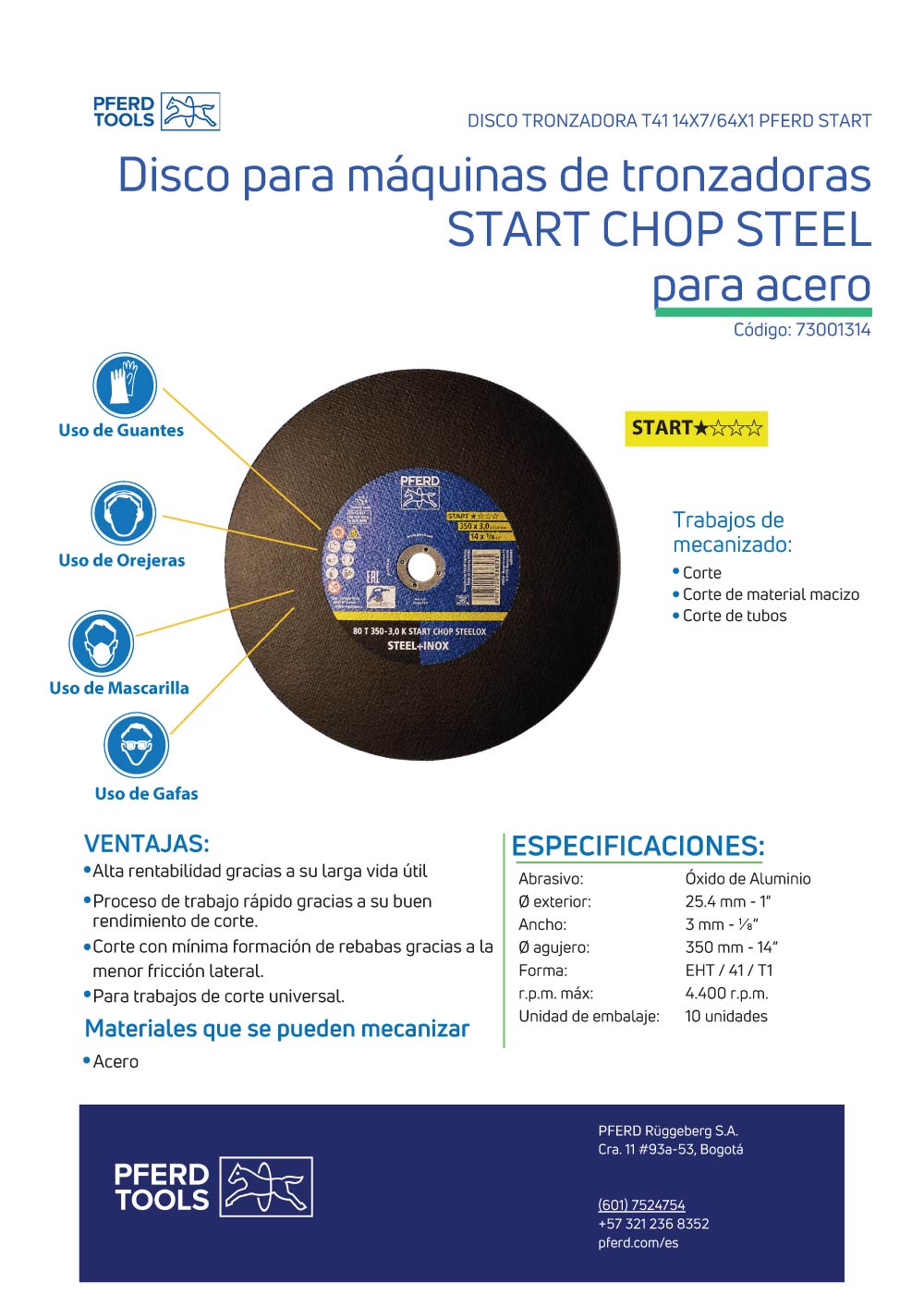 Corte de materiales macizos, tubos, y perfiles de acero. Proceso de trabajo rápido gracias a su buen rendimiento de corte con mínima formación de rebabas gracias la fricción lateral mínima. Ideal para trabajos de corte universales. Alta rentabilidad gracias a su larga vida útil. Dimensiones: 350mm X 3.0mm X 25,4mm. Velocidad máxima: 4,400 RPM (80M/S).