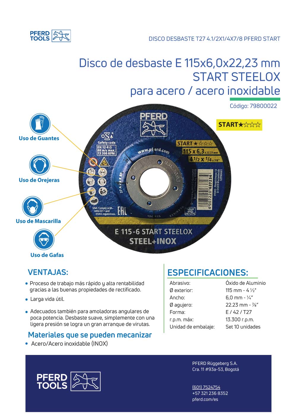 Disco de desbaste para acero, con gran rendimiento y buena duración. Dimensiones: 115mm X 6.3mm x 22,23mm. Velocidad máxima: 12,200 RPM (80M/S).