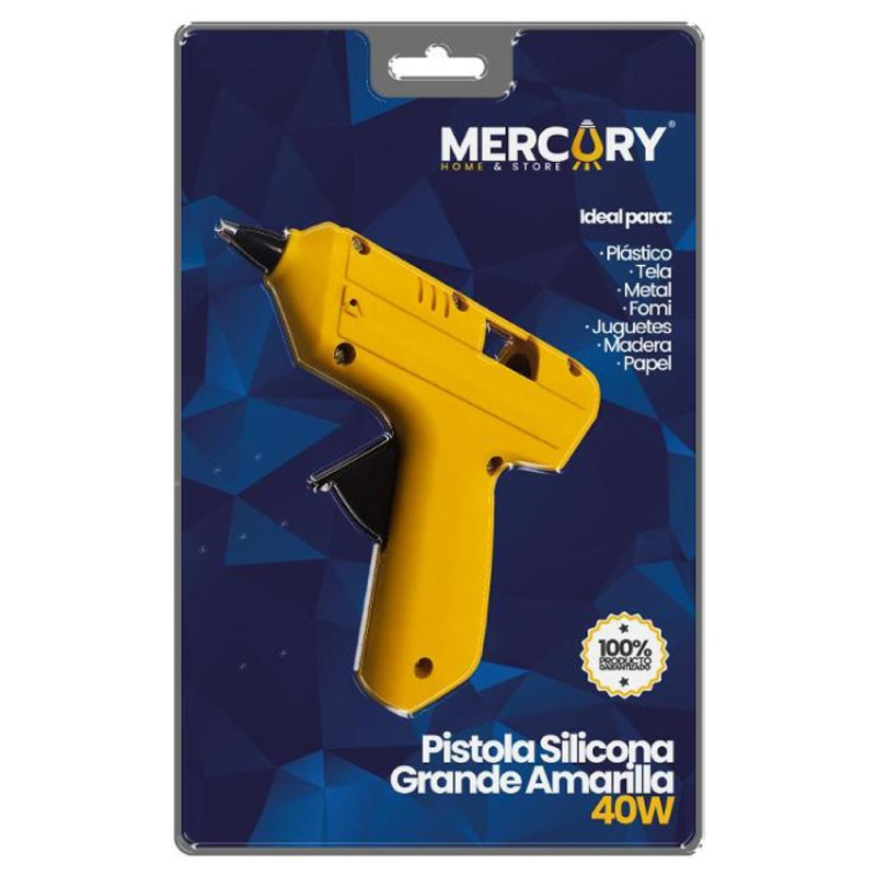 Pistola silicona grande amarilla, ideal para pegar plásticos, tela, metal, fomi, juguetes, madera papel, etc. Voltaje 110V, Frecuencia: 50/60 Hz, Potencia: 10WColor: Amarillo, Longitud de cable: 1m.