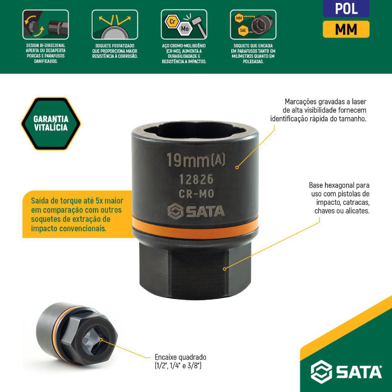 Extrae tornillos oxidados y redondeados. Diseño interior innovador con canales cónicos para insertar fácilmente tornillos dañados. Dados medida dual para trabajar en tornillos milimétricos y en pulgadas. Diseño bidireccional para aflojar o ajustar tornillos dañados.