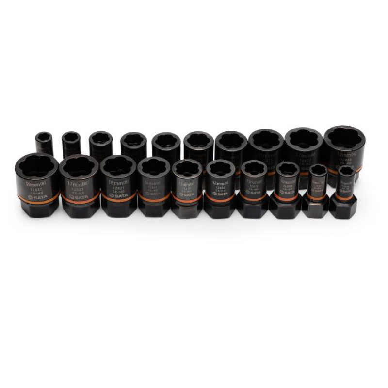 Copas de impacto con canales cónicos para facilitar el agarre en el tornillo desgastado o dañado. Herramientas diseñadas para altos torques. Aleación en Cromo Molibdeno que permite una alta resistencia. Estampada en laser y en bajo relieve para fácil identificación. Acabado Fosfato negro. Garantía de por vida. No aplica para los estuches. Diseño bidireccional para ajustar o aflojar tornillos desgastados o dañados. Dados de tamaño dual para trabajar con tornillos en milímetros y pulgadas. Remueve tornillos de cabeza redondeada, desgastada y oxidada.
