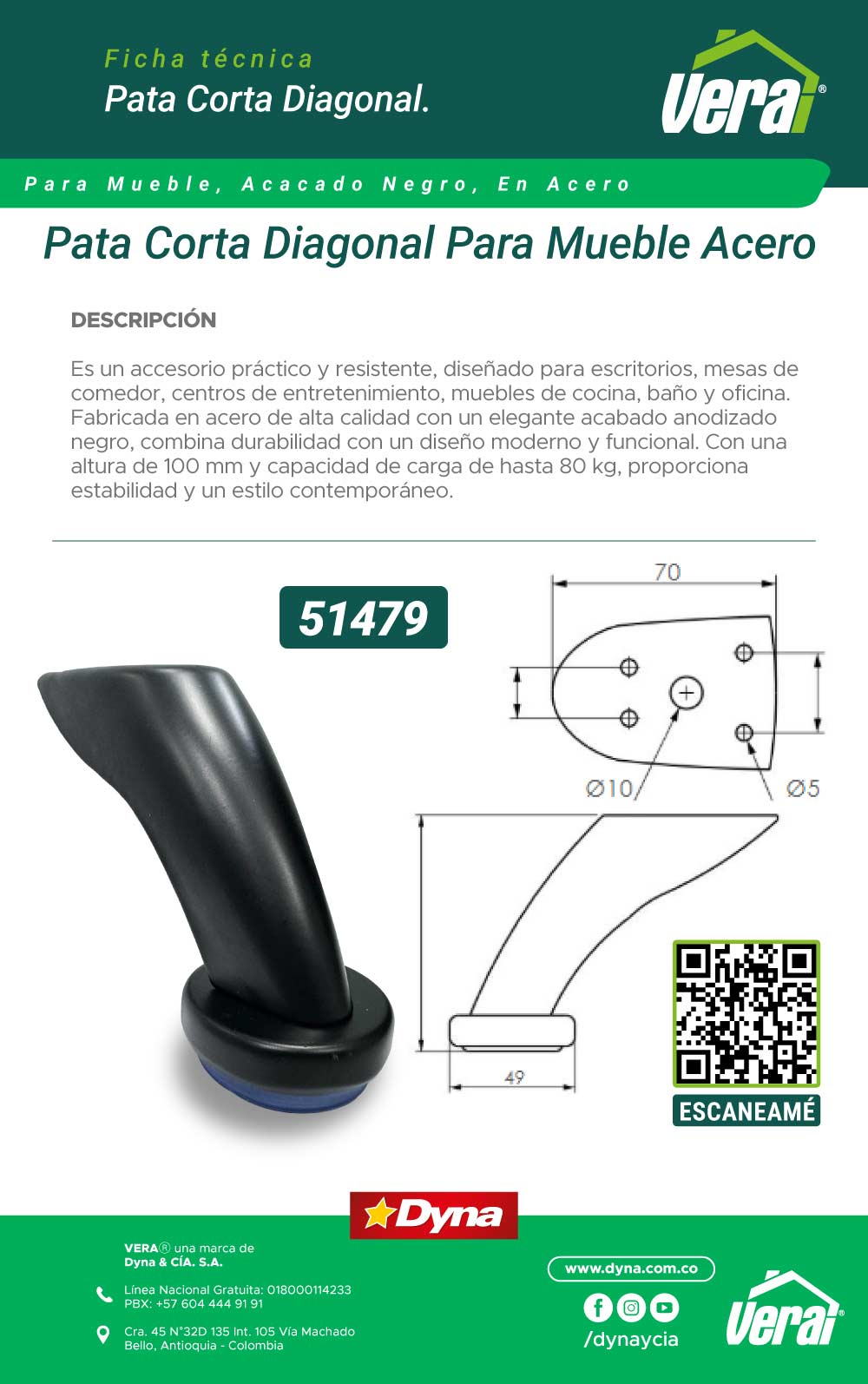 Es un accesorio práctico y resistente, diseñado para escritorios, mesas de comedor, centros de entretenimiento, muebles de cocina, baño y oficina. Fabricada en acero de alta calidad con un elegante acabado anodizado negro, combina durabilidad con un diseño moderno y funcional. Con una altura de 100 mm y capacidad de carga de hasta 80 kg, proporciona estabilidad y un estilo contemporáneo.