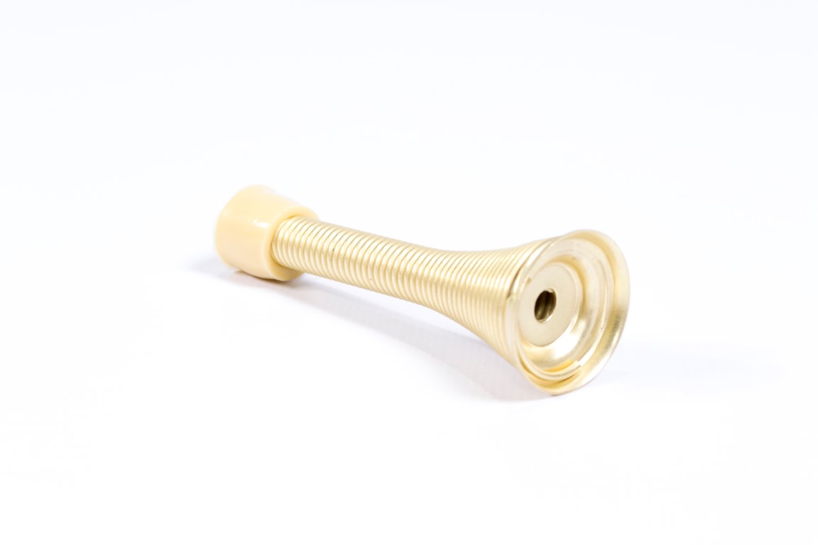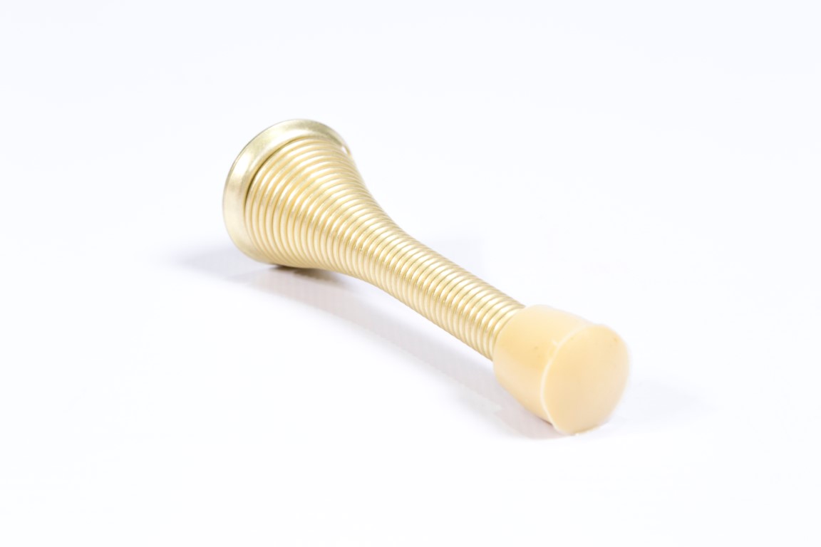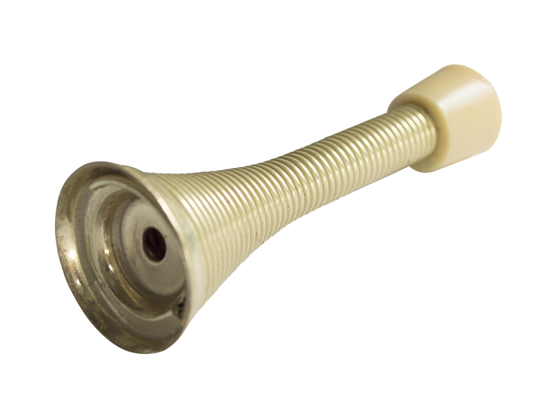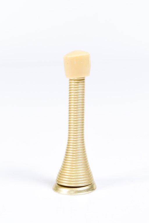 Cuerpo fabricado en alambre de acero, acabado latonado, evita golpes entre la puerta y la pared, protegiendo la cerradura, resistencia al impacto y gran durabilidad, el tope es en PVC, este acabado tiene propiedades que alargan la vida del herraje protegiéndola de la oxidación en especial en zonas altamente salínicas.