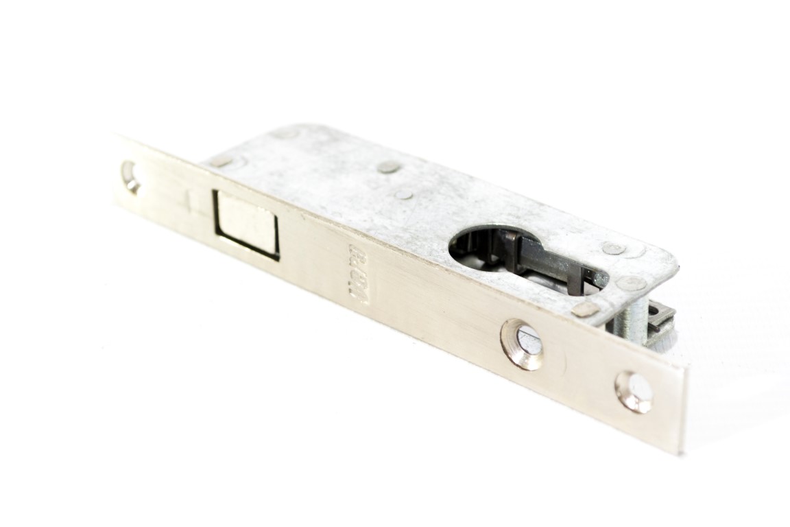 Cerradura de incrustar tipo pico de loro con cilindro sencillo o doble en latón, diseñada para brindar seguridad en puertas y ventanas corredizas o batientes. Su diseño invertible permite una instalación versátil. Fabricada en cold rolled calibre 12 con un resistente macho en zamak para mayor durabilidad. Cuenta con un centro de instalación de 16 mm y es adecuada para puertas de hasta 50 mm de espesor, garantizando un ajuste preciso y seguro. incluye escudos del cilindro