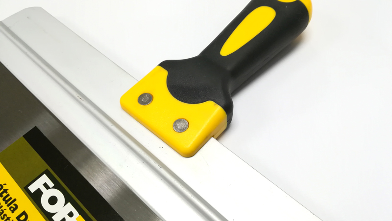 Fabricadas en acero al carbono, templado. Mayor durabilidad. Resistente a la flexión. Se utiliza principalmente para trabajos de pintura como: relleno de grietas y agujeros, preparación de mezclas y raspado de superficies. También se utiliza para trabajos en fontanería y albañilería, se recomienda no ser usadas en manipulación de alimentos. Mango Plástico.