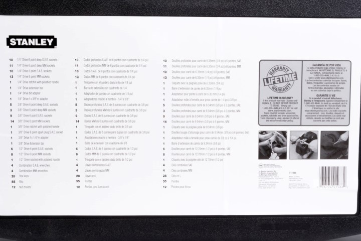 201 Piezas · Contenido · (10) 5/32, 3/16, 7/32, 1/4, 9/32, 5/16, 11/32, 3/8, 7/16 & 1/2 pul Dados · (13) 4, 4.5, 5, 5.5, 6, 7, 8, 9, 10, 11, 12, 13 & 14 mm Dados · (10) 5/32, 3/16, 7/32, 1/4, 9/32, 5/16, 11/32, 3/8, 7/16 & 1/2 pul Dados Largos · (11)