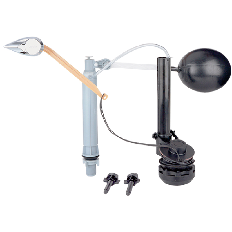 Griferia compuesta por valvula de entrada y valvula de salida en el tanque sanitario. Valvulas fabricadas en poliestireno para la entrada y salida de agua en el taque sanitario