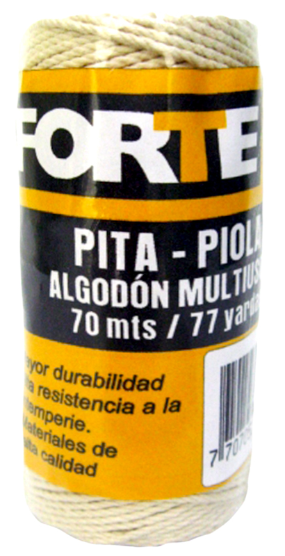Piola, algodón multiusos, N.18, Color: natural. Composición: algodón: 90%, poliéster: 10%, tipo de torsión: de s a z. Medida 18 x 70 mts. Peso 100 gr.