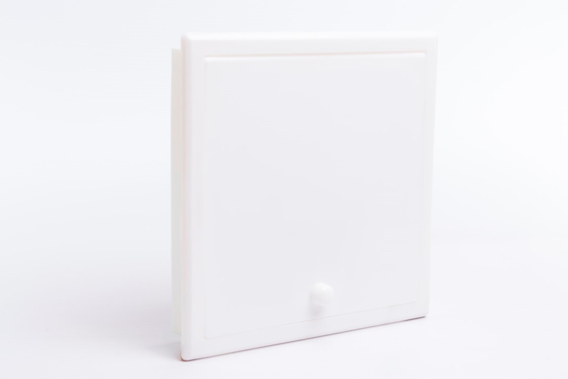 Tapa para ocultar valvulas de regulacion o llaves. Accesorio fabricado en plastico en medidas de 15 x 15 centímetros