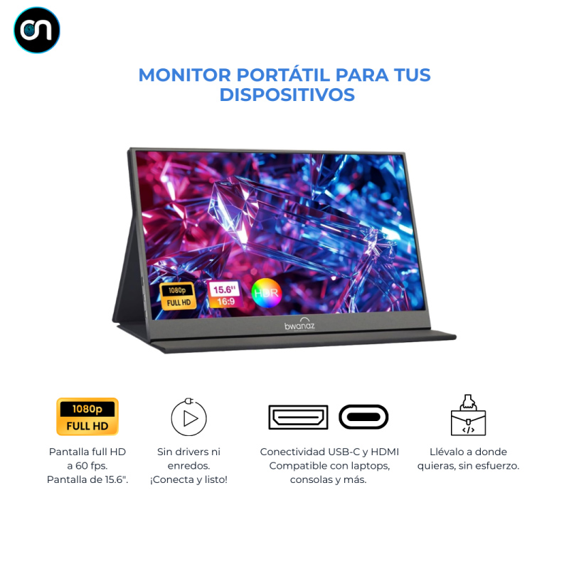 Monitor Portátil Bwanaz 15.6" Full Hd 1080P Y Tecnología De Panel Ips, Brindando Imágenes Nítidas Y Colores Precisos Desde Cualquier Ángulo. Su Diseño Ultradelgado Y Liviano Lo Hace Ideal Para Profesionales En Movimiento. Conectividad Usb-C Y Hdmi, Permite Una Compatibilidad Amplia Con Laptops, Smartphones, Consolas De Videojuegos Y Más. Incluye Una Funda Inteligente Que Funciona Como Soporte. Incorpora Altavoces Integrados Para Una Experiencia Multimedia Completa. La Función Plug & Play Garantiza Una Instalación Rápida Y Sencilla. Lo Convierten En Una Solución Ideal Para Quienes Necesitan Una Pantalla Externa Funcional Y Portátil.