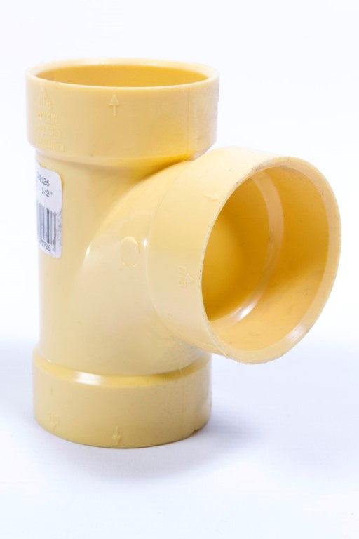 Accesorio para unir a la tuberia principal, otro desague de igual diámeto. Accesorio de PVC fabricado por inyección , ángulo de 90 , NTC 1341