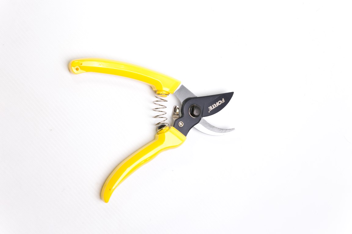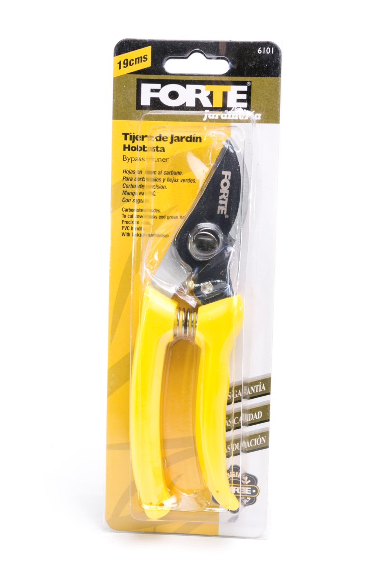 Hojas en acero al carbono. Mangos recubiertos en plástico y fibra de vidrio. Incluye seguro. Útil para cortes de hojas, tallos, frescos, húmedos y secos. Jardín de poda hobbista económica.