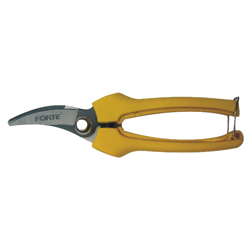 Hojas en acero al carbono. Mangos recubiertos en plástico y fibra de vidrio. Incluye seguro. Útil para cortes de hojas, tallos, frescos, húmedos y secos.Cosecha punta larga de 19 cms.