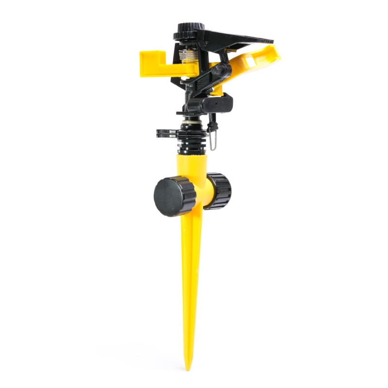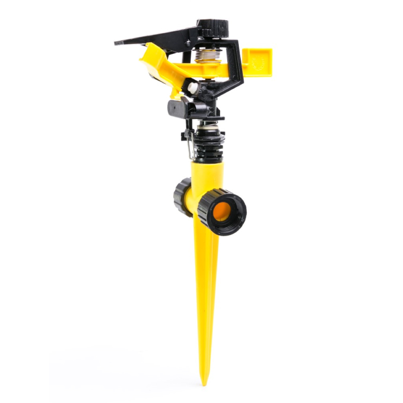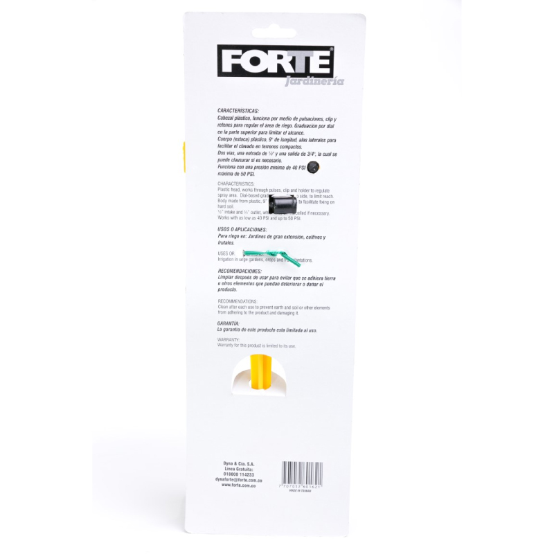 Accionamiento a través de pulsaciones (clip y retenes). Estaca con alas laterales. 9pg de largo 2 vías (3/4pg y 1/2pg) fabricado en ABS y PP para riego profesional en jardines de gran extensión, y agrícolas versatilidad. Permite clausurar una de las salidas.