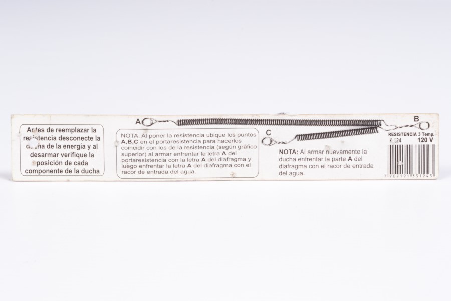 Resistencia tres temperaturas 110v., para duchas con selector de temperatura; fabricada en resistohm 125, lo que prolonga su vida util. ref. k-002, k-004, k-101, k-102, k-103, k-105.