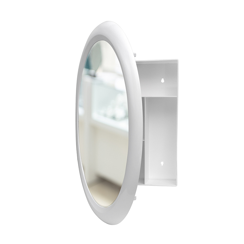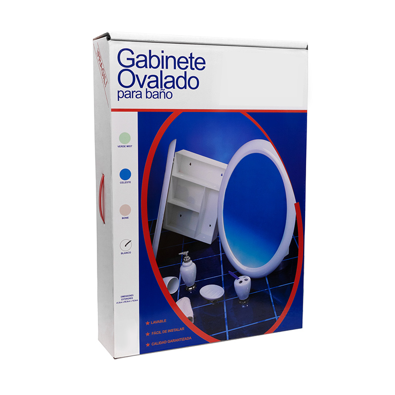 Gabinete con práctico diseño con divisiones interiores y espejo ovalado. Producto con un brillo excelente y buena resistencia ideal para hogar u oficina. Diseño de apertura hacia la izquierda o derecha según su instalación. Medidas: Gabinete: 30 cm x 40.5 cm x 10 cm. Marco Ovalado: 41 cm x 60 cm. Peso: 1275 gr. Fabricado con polímeros de alta resistencia y durabilidad. Apariencia moderna y elegante.