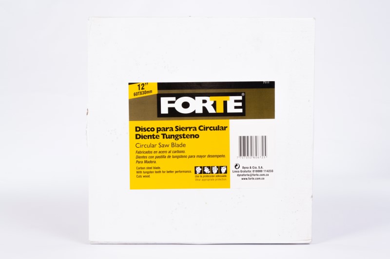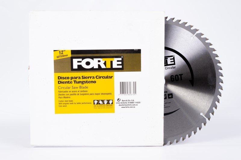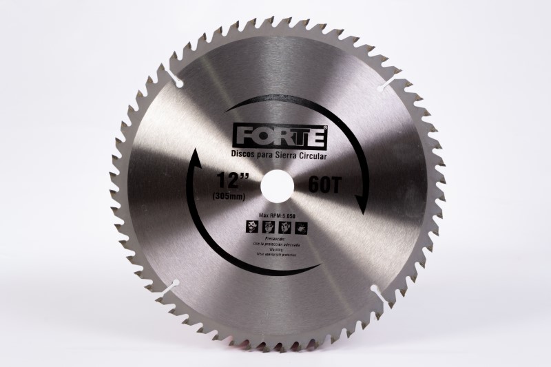Cuerpo fabricado en acero al carbono para mayor resistencia. Diente con pastilla de tungsteno para mayor dureza y rendimiento en el corte. Pastilla de tungsteno soldada por láser que evita el desprendimiento en el momento de operación. Se utiliza para corte de madera. Diámetro 12pg, # de dientes 60, Eje 30 mm * con bujes 1pg (25 mm) y 5/8pg (16 mm). Empaque blíster individual con bujes incluidos.