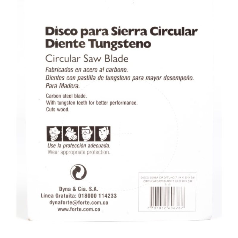 Disco de Sierra para Madera Circular 7.1/4" X 20 Dientes X 5/8"
