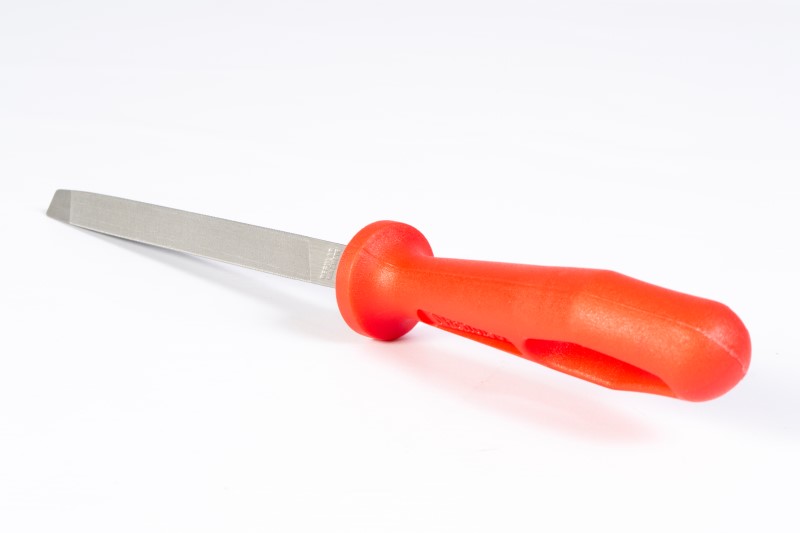 61470660. FABRICADA EN ACERO SAE 1095 (Alto contenido de Carbono). CABO DE POLIPROPILENO CON ALTA RESISTENCIA AL IMPACTO, SOLVENTES Y GRASAS. Es propicia para desbastar metales y otros materiales duros, dejando un acabado fino, su perfil triangular permite trabajar en ángulos internos, al igual que para afilar una gran variedad de herramientas de corte como, machetes, sierras, serruchos, etc. la Regular, que es paralela en tres cuartas partes de su longitud; y una cuarta parte de su longitud hacia la punta es ahusada.