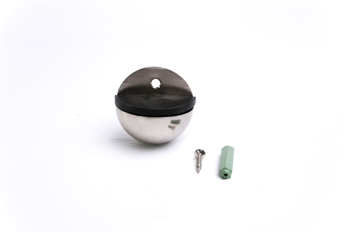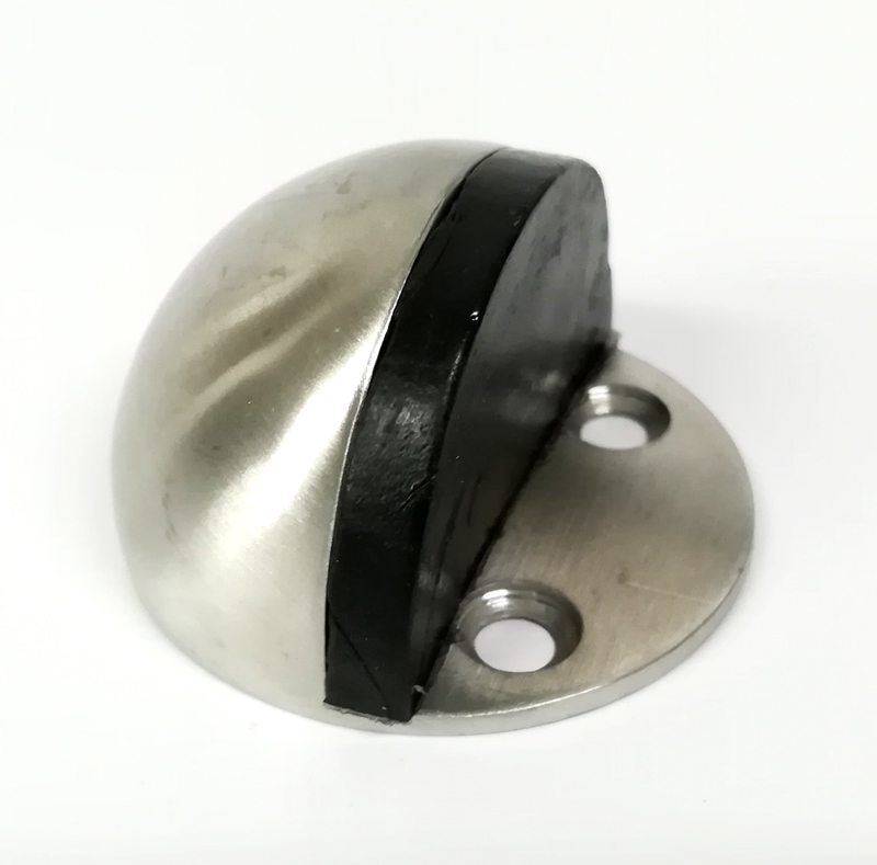 Tope de puerta para piso en diseño media luna, fabricado en zamak y acero Cold Rolled con acabado en acero inoxidable para mayor resistencia y durabilidad. Su diseño compacto y funcional absorbe impactos, protegiendo la puerta y la cerradura contra golpes al abrir. Ideal para instalación en piso, proporcionando estabilidad y seguridad en el uso diario.