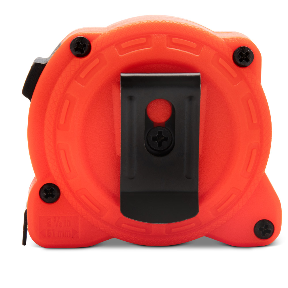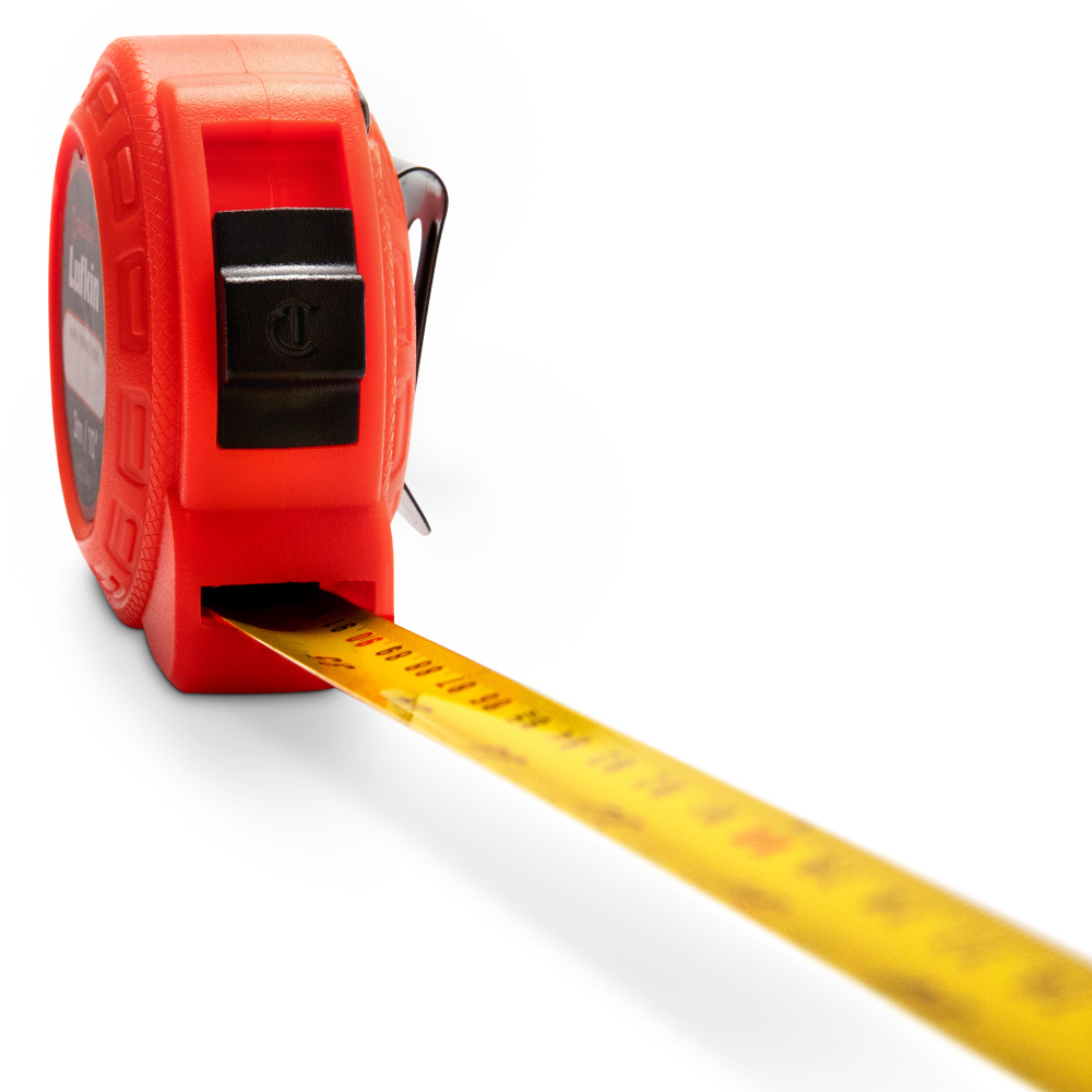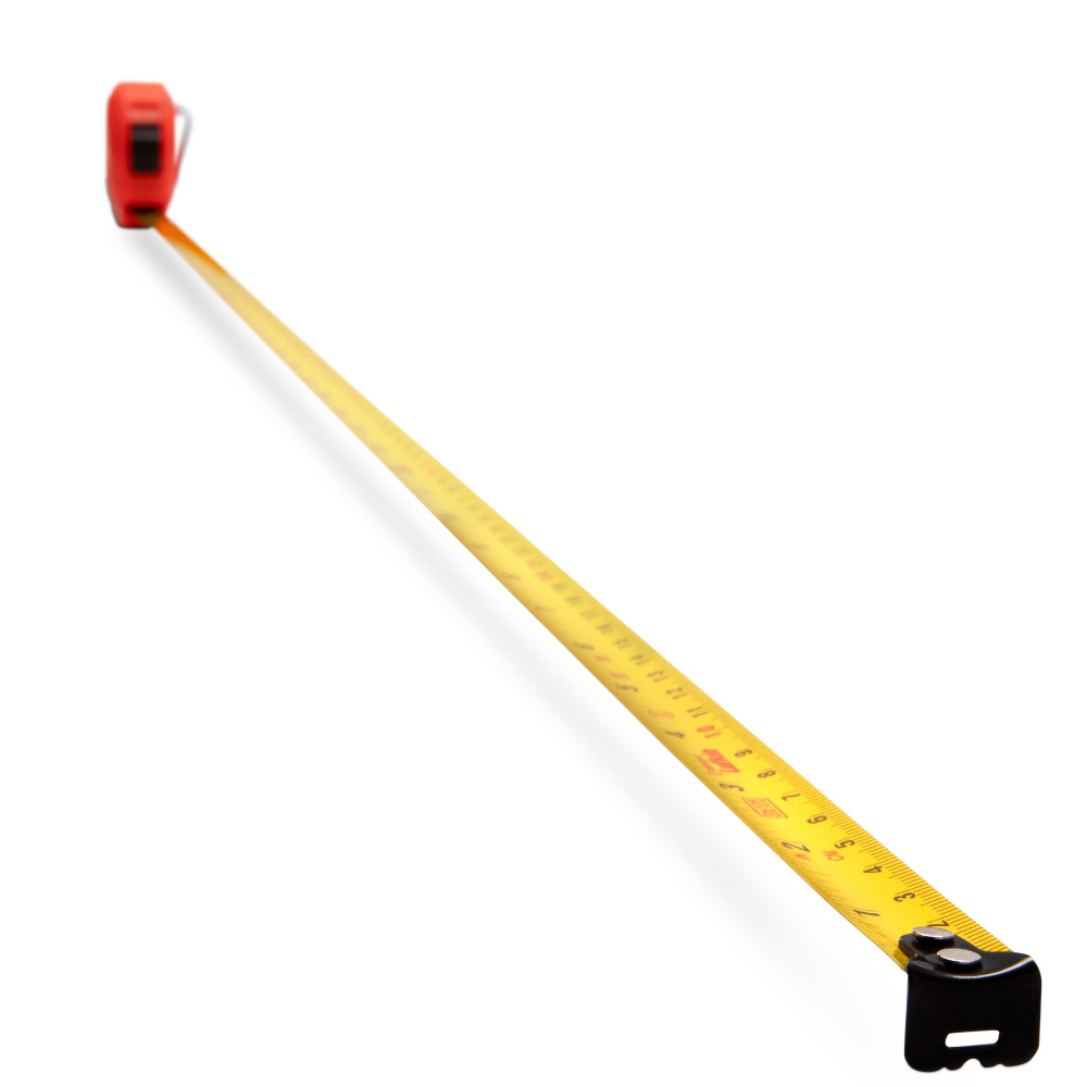 Nueva cinta NYLON FILMED con acabado Mate. Evita el reflejo de la luz, facilita la lectura de la graduación y garantiza más seguridad en el recogimiento. La cinta es elaborada en acero templado de alta calidad con recubrimiento nylon anti reflejo. La carcasa es fabricada en plástico ABS altamente resistente al impacto. El freno está formado por un botón bloqueador y un botón pisador elaborados en Nylon Ultramatic. Tiene un gancho extra largo de mayor agarre y de acero de alta calidad. El nuevo gancho tiene mayor área de contacto, con tres remaches que permite lectura lateral sin perder precisión. La Impresión es consecutiva en la escala dual, mm y pulgadas