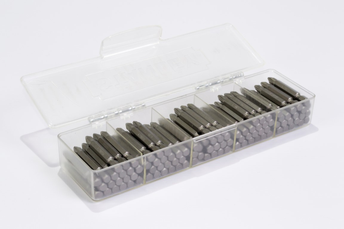 Estuche Plástico de 100 Piezas · 2" Largo (50 mm) · N°2 1/4" Punta Phillips . Hecho de Acero S2. Excede Normas DIN. Ideal para herramientas Electricas y Manuales.