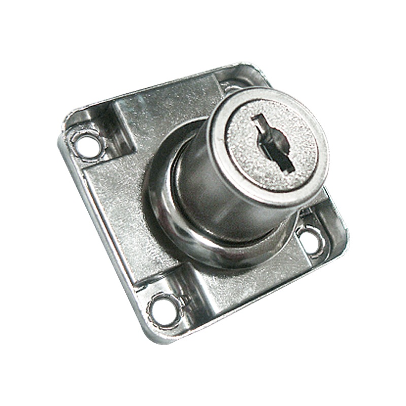 Cerradura para muebles modelo 1550 Nuovo, con acabado níquel brillante. Diseñada para gabinetes, guanteras, vitrinas, muebles y escritorios, compatible con puertas de ala corredizas. Cilindro de guardas en zamak para mayor seguridad. Incluye 2 llaves simétricas con protector plástico. Fabricada en lámina de acero para alta resistencia. mecanismo de una vuelta y sujeción con 4 tornillos incluidos.
