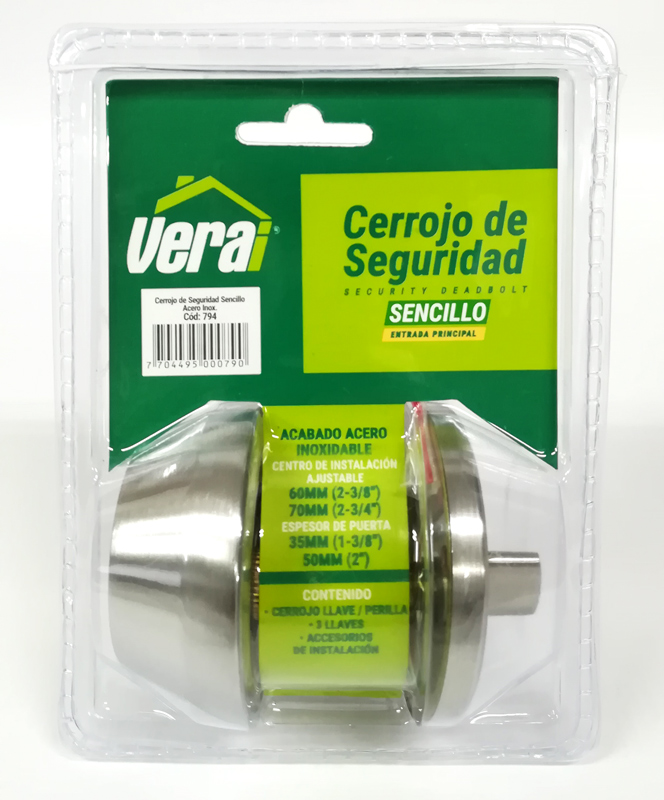Cerrojo de seguridad auxiliar con uno o dos cilindros, ideal para reforzar la protección en puertas de 35 a 50 mm de espesor. Cuenta con palanca o macho con alma de acero para mayor resistencia y durabilidad. Su cilindro de latón incorpora 5 pines de seguridad, brindando un mecanismo confiable. Componentes protegidos contra la corrosión para un desempeño prolongado. Backset ajustable de 60 o 70 mm para una instalación versátil. Se acciona desde el interior con perilla y desde el exterior con llave o la opcion de llave llave. Incluye tres llaves.