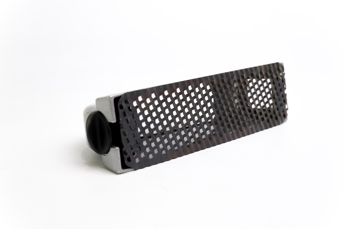 Longitud 5-5 / 8 , 142.88mm. Ancho 1-5 / 8 , 41.28mm. Diseñado para su uso con una sola mano. Hoja de reemplazo 21-398. Fabricado con un color gris metálico, y cuerpo fundido de aleación.