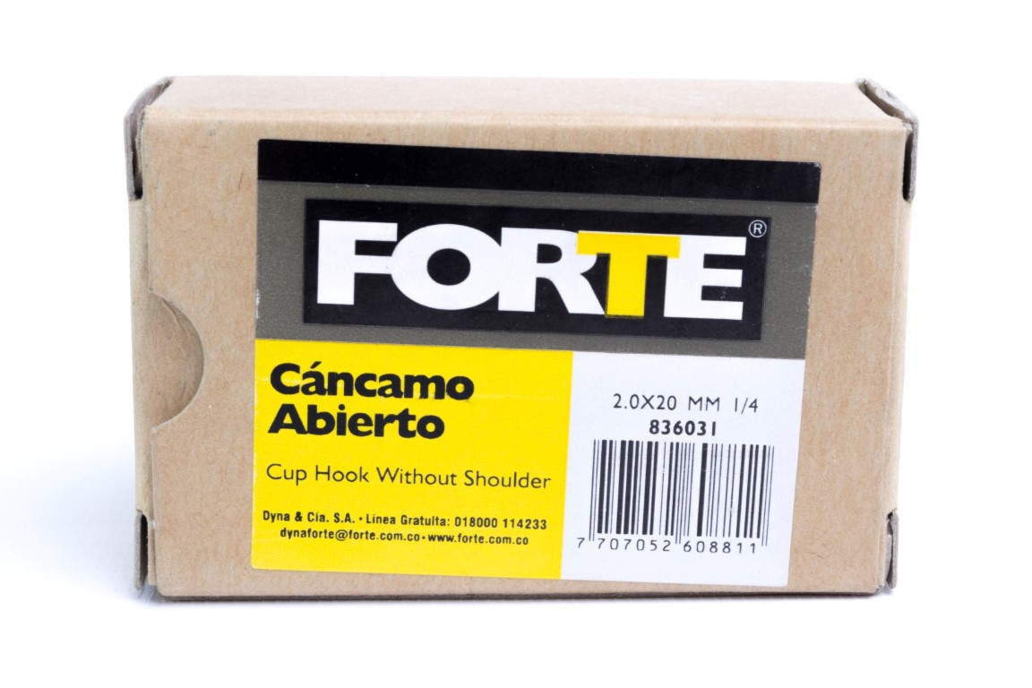 Fabricados en acero con proceso de galvanizado en frio, protege la oxidación del material. Medida: Espesor 2mm (5/64pg) Ojo 6mm (15/64pg). Longitud: Rosca 8 mm (5/16pg) Total 30 mm (25/32pg). Empaque por 144 Unidades.