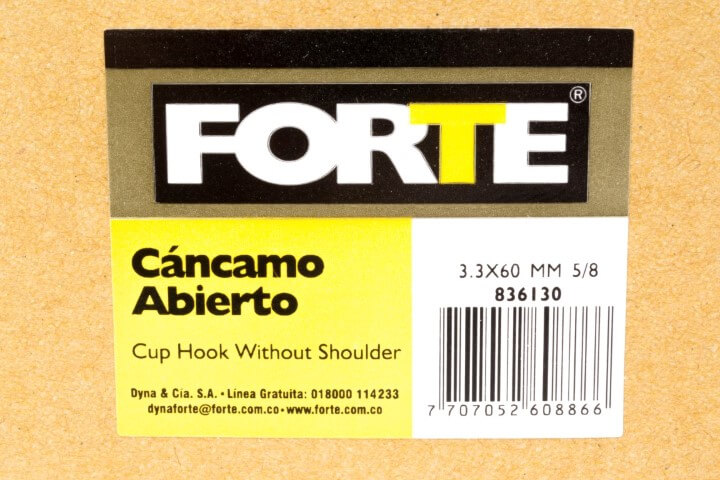 Fabricados en acero con proceso de galvanizado en frio, protege la oxidación del material. Medida: Espesor 3.7mm (9/64pg) Ojo 16.2mm (41/64pg). Longitud: Rosca 19 mm (3/4pg) Total 70 mm (2.3/8pg). Empaque por 144 Unidades.