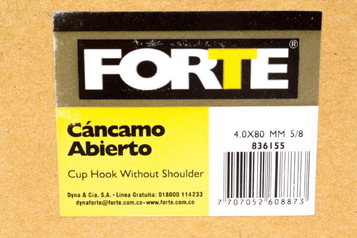 Fabricados en acero con proceso de galvanizado en frio, protege la oxidación del material. Medida: Espesor 4mm (5/32pg) Ojo 16.2mm (41/64pg). Longitud: Rosca 19 mm (3/4pg) Total 80 mm (3.9/64pg). Empaque por 144 Unidades.