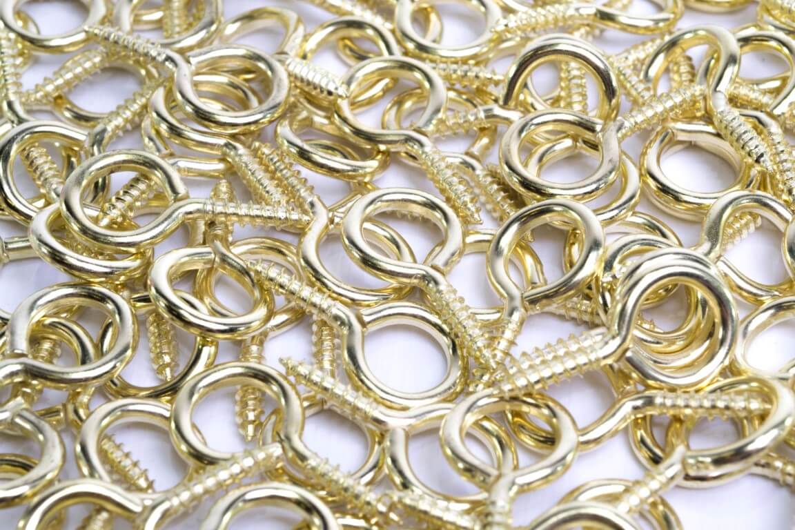 Fabricados en acero con proceso de galvanizado en frio, protege la oxidación del material. Útil para colgar objetos. Cáncamo N° 4. Medida: Espesor 2.2mm (3/32pg) Ojo 8mm (5/16pg). Longitud: Rosca 10mm (3/8pg) Total 26mm (61/64pg). Empaque por 144 Unidades.