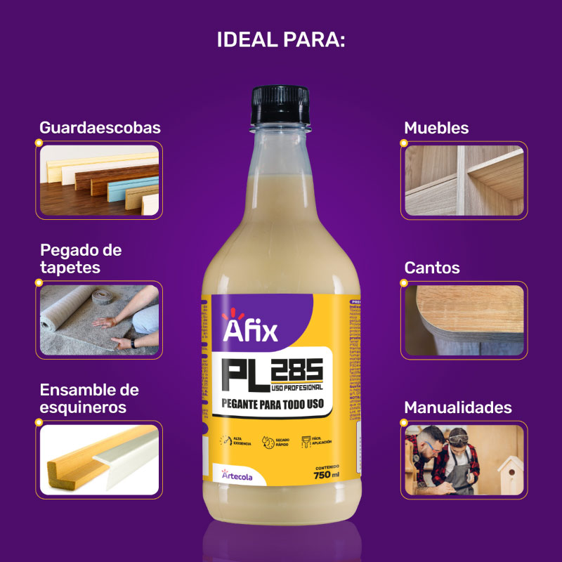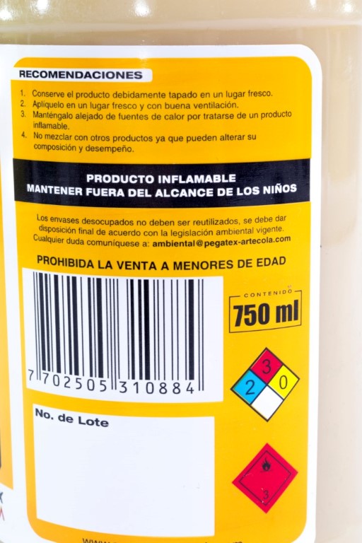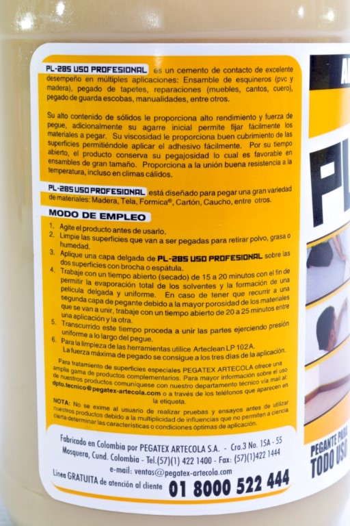Adhesivo de envase plastico formulado a base de cloropreno, con excelente fuerza adhesiva recomendado para industria del calzado y la madera en instalaciones de alfombras, montajes de esquineros,guardaescobas, para pegar formica, cuero caucho, textiles entre otros