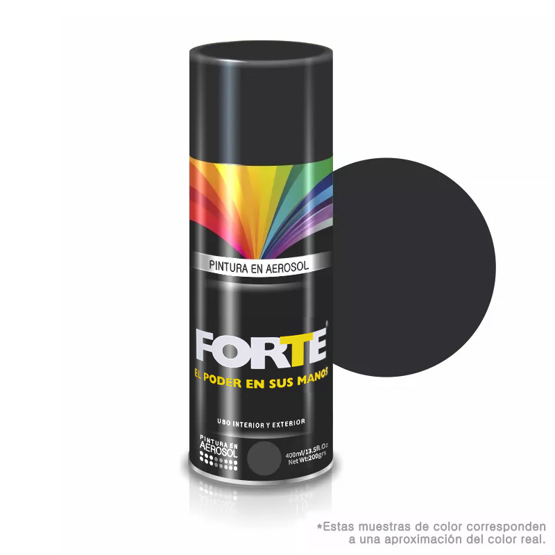 Pintura en aerosol multipropósito de acabado brillante, ideal para aplicar en diferentes superficies como madera, metal, cerámica o concreto. Fácil aplicación y rápido secado. Rendimiento aproximado de 1m2 por envase. Alta adherencia y cubrimiento. Presentación de 400 ML. Referencia 8842 Pinte.