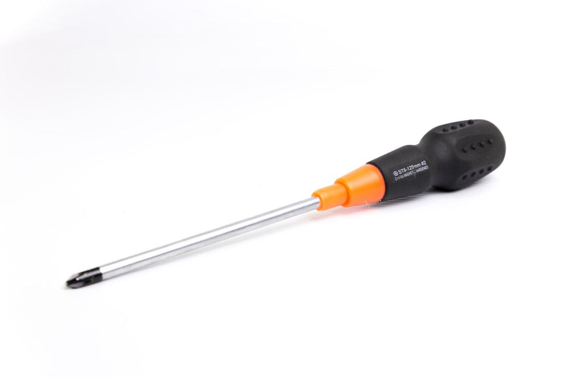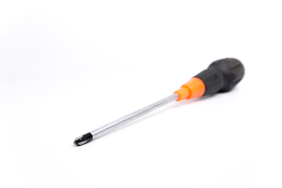Barra de Acero templado empotrada hasta 3/4 partes del mando. Mango de agarre suave ergonómico de dos materiales. Punta endurecida y magnetizada para mayor control.