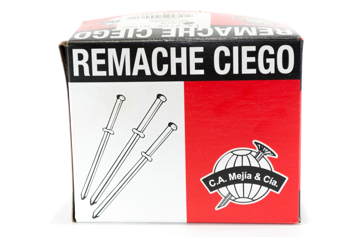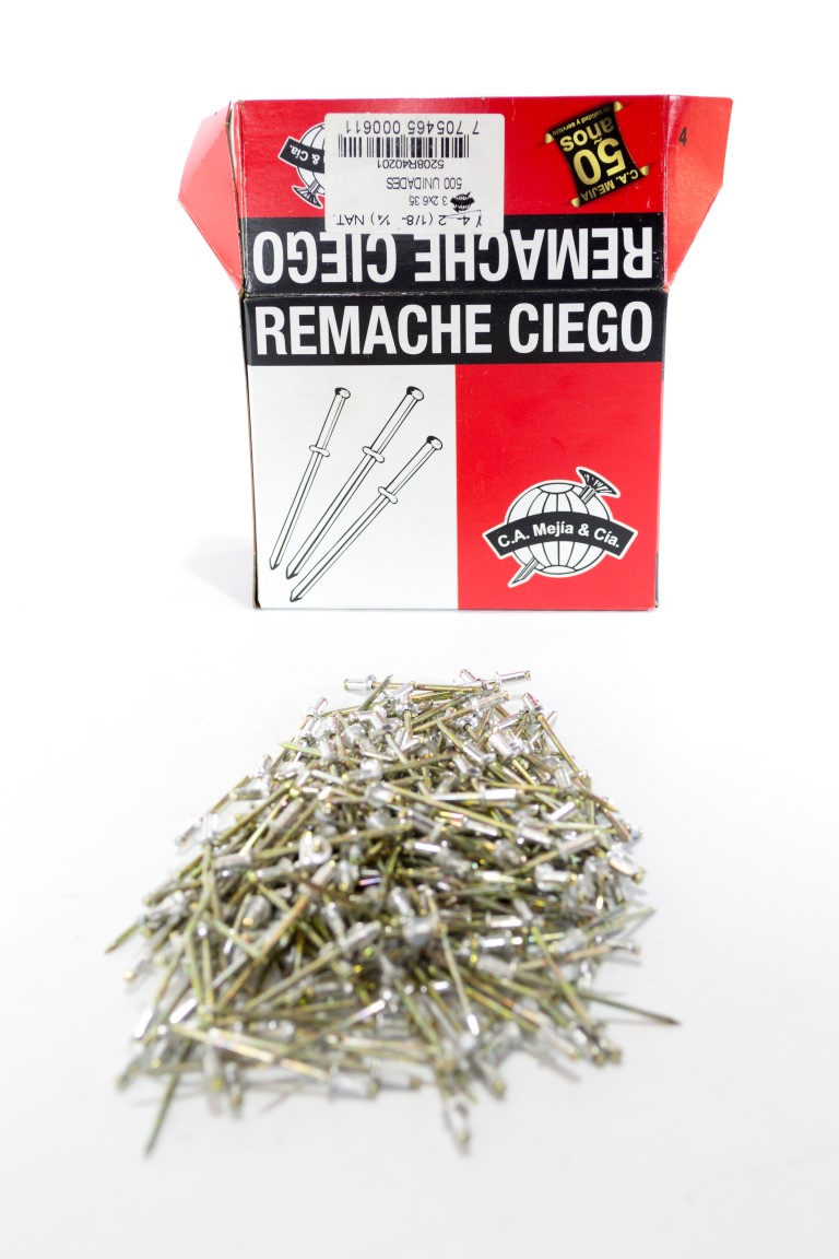 El remache ciego se compone de dos elementos, el remache de aluminio y el clavo o mandril. son utilizados para fijar piezas donde se requieren procesos de ensamble agiles, seguros y fuertes. son fabricados segun la norma internacional ifi 114 en diferentes tipos y tamanos para satisfacer una amplia gama de aplicaciones segun las diferentes necesidades.