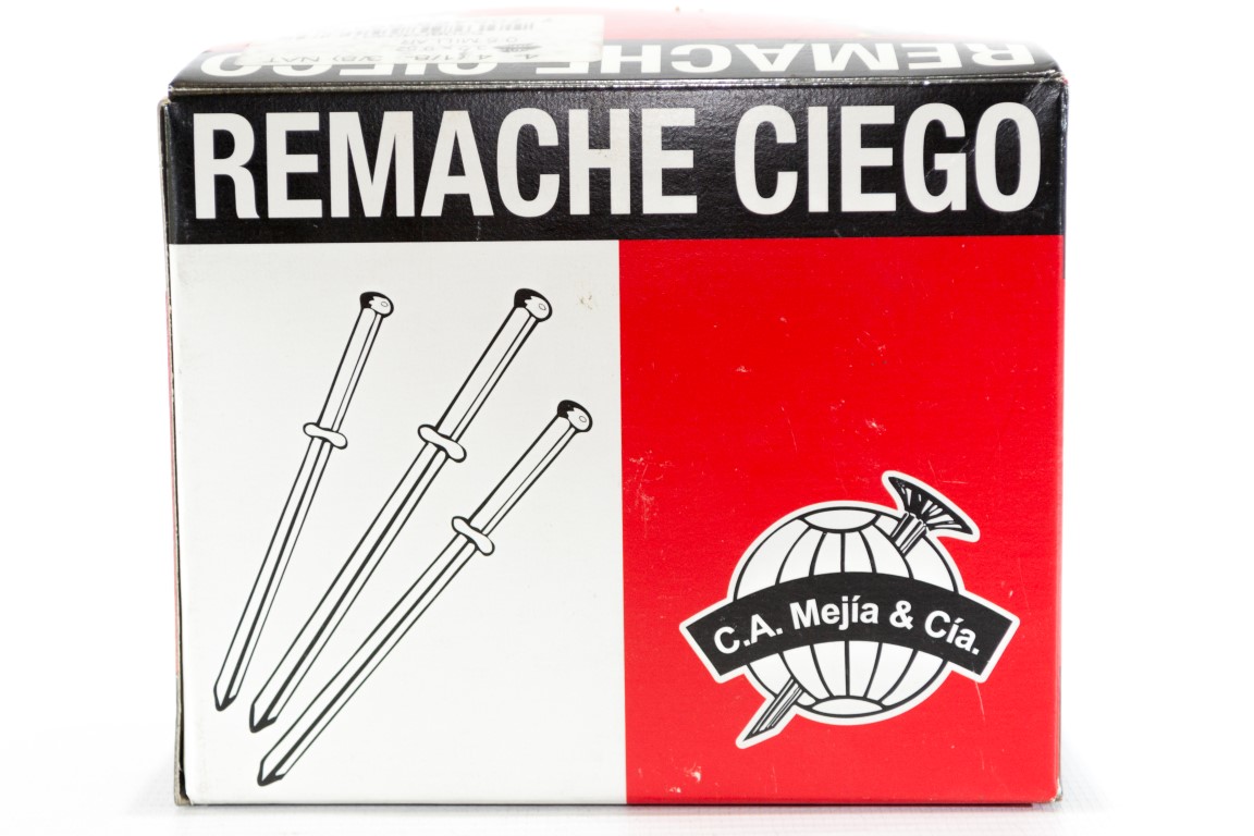 El remache ciego se compone de dos elementos, el remache de aluminio y el clavo o mandril. son utilizados para fijar piezas donde se requieren procesos de ensamble agiles, seguros y fuertes. son fabricados segun la norma internacional ifi 114 en diferentes tipos y tamanos para satisfacer una amplia gama de aplicaciones segun las diferentes necesidades.