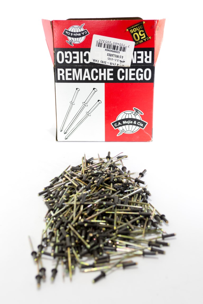 El remache ciego se compone de dos elementos, el remache de aluminio y el clavo o mandril. son utilizados para fijar piezas donde se requieren procesos de ensamble agiles, seguros y fuertes. son fabricados segun la norma internacional ifi 114 en diferentes tipos y tamanos para satisfacer una amplia gama de aplicaciones segun las diferentes necesidades.