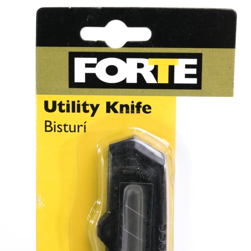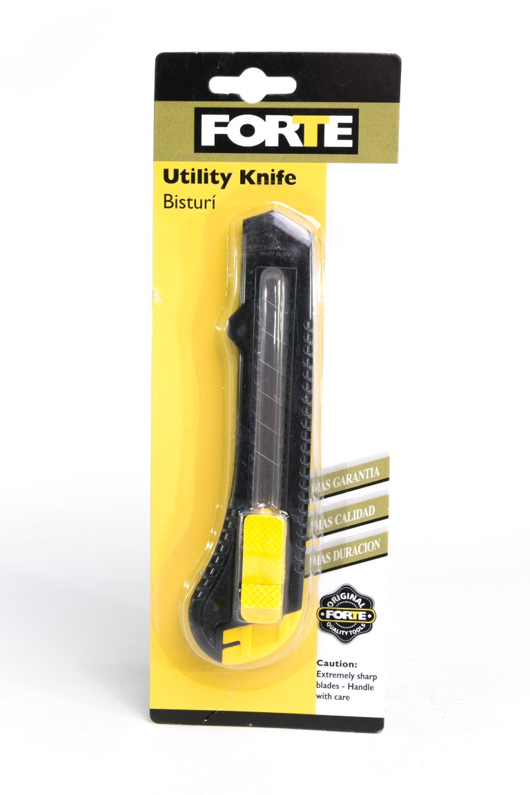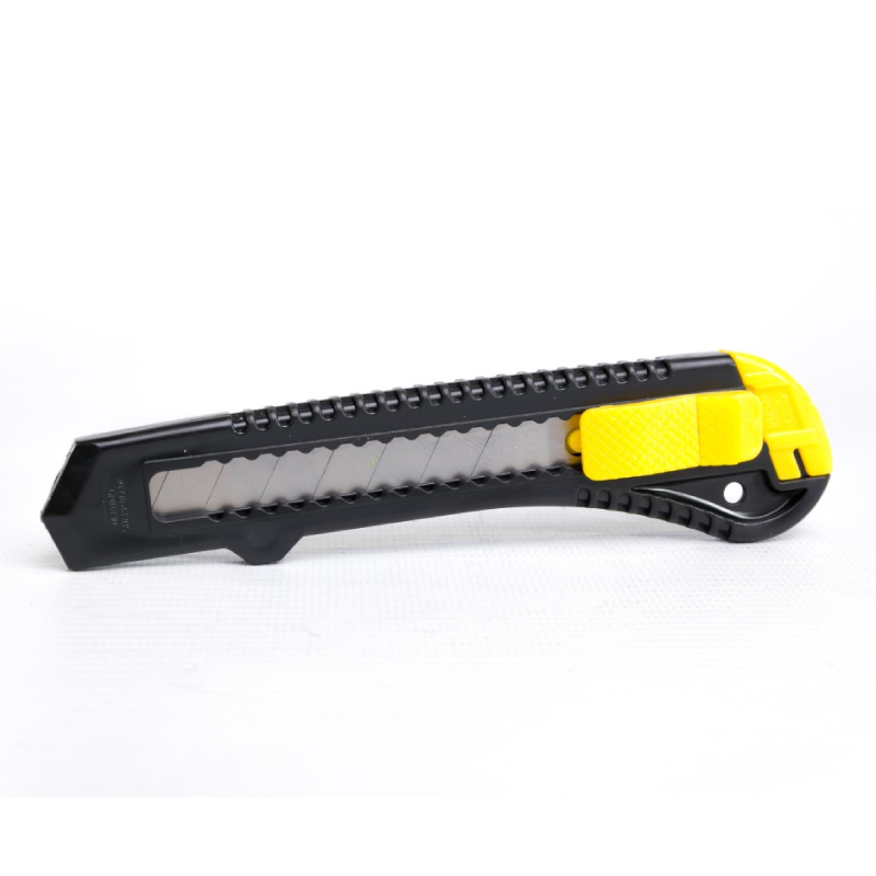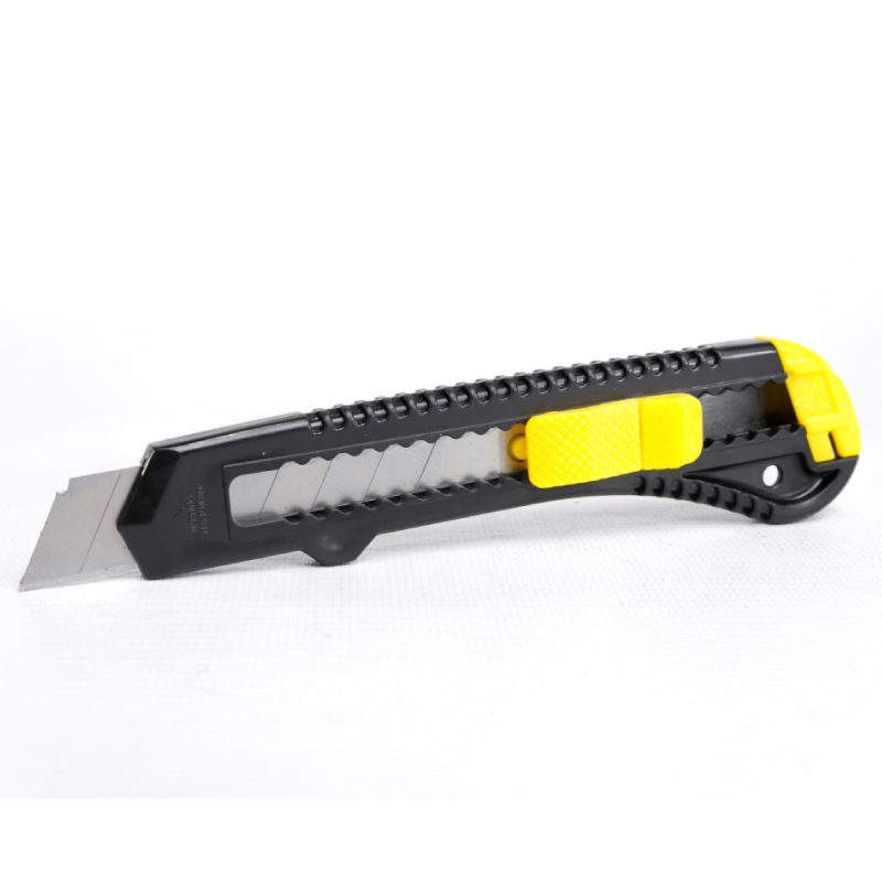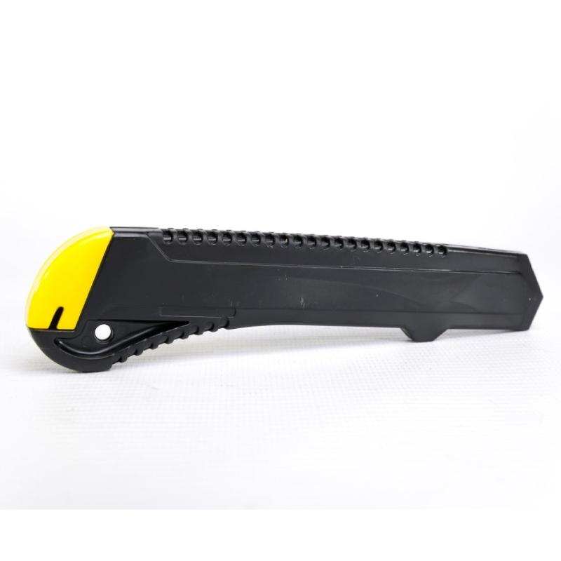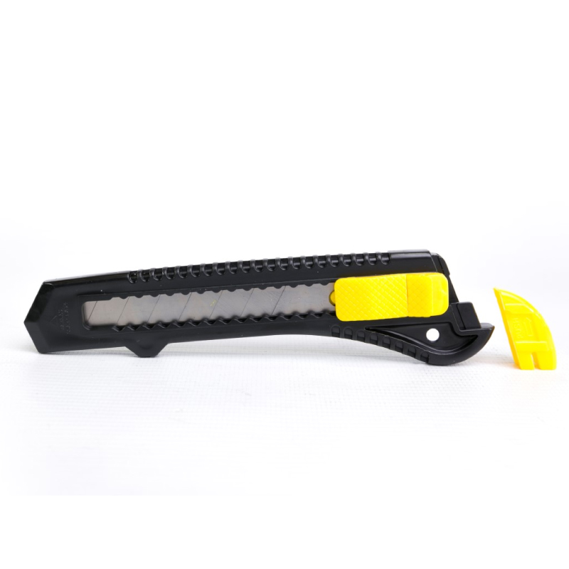 1. Cuerpo plástico ABS, económico. Hoja de 18 mm acero alto carbono templado y revenido.