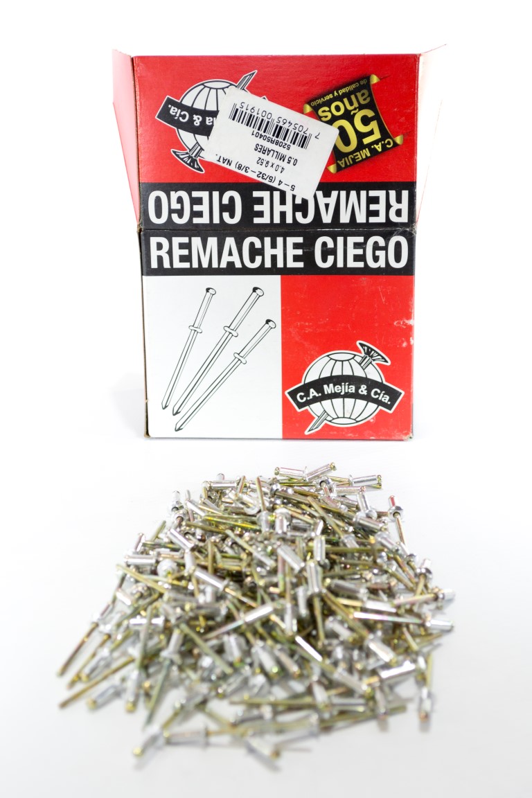 El remache ciego se compone de dos elementos, el remache de aluminio y el clavo o mandril. son utilizados para fijar piezas donde se requieren procesos de ensamble agiles, seguros y fuertes. son fabricados segun la norma internacional ifi 114 en diferentes tipos y tamanos para satisfacer una amplia gama de aplicaciones segun las diferentes necesidades.