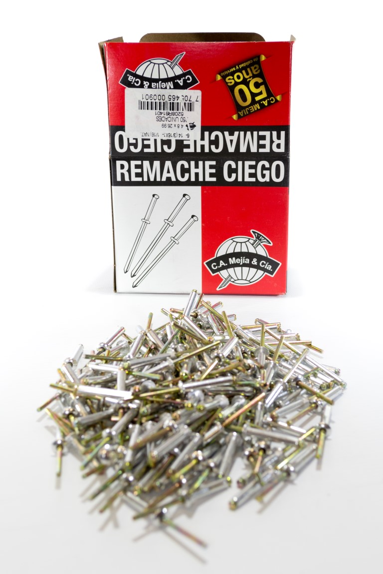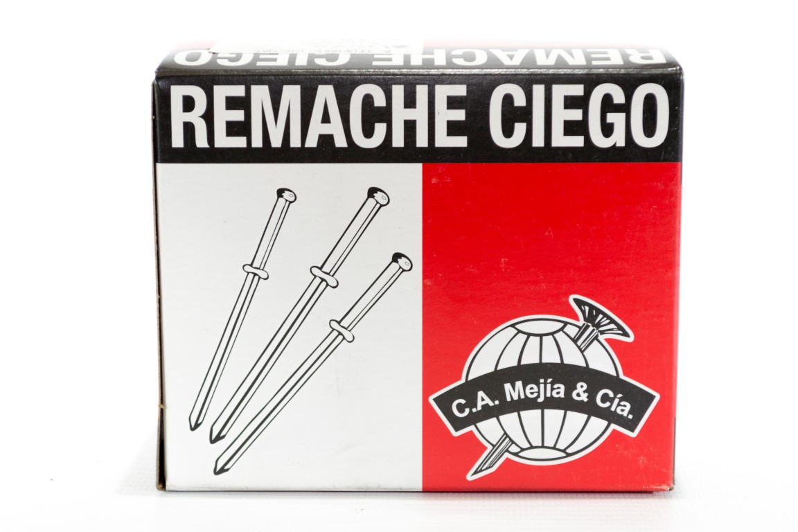 El remache ciego se compone de dos elementos, el remache de aluminio y el clavo o mandril. son utilizados para fijar piezas donde se requieren procesos de ensamble agiles, seguros y fuertes. son fabricados segun la norma internacional ifi 114 en diferentes tipos y tamanos para satisfacer una amplia gama de aplicaciones segun las diferentes necesidades.