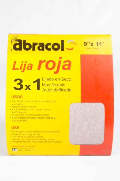 Para lijado en seco en la industria automotriz y de la madera, grano en oxido Premium para alto rendimiento, lija recubierta con estearato para uso en húmedo y en seco. Paquete x 50 Unidades. Hoja 9" x 11" (230 X 280mm). Grano #220