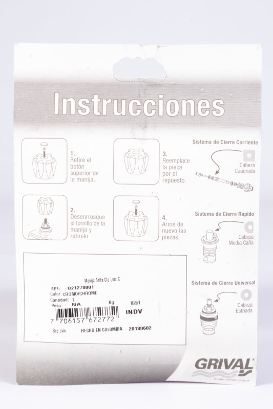 * Material de fabricación plástico de ingenieria.* Material ABS* acabado cromado.* Cruceta para lavamanos caliente* garantía 45 años