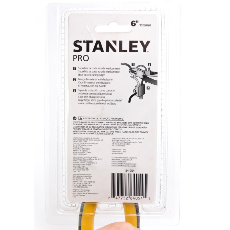 [95-IB] 84-054 Mango Bi-Material anti-deslizante. 6 pulgadas de Largo (152 mm) X 2-2/5" (61 mm) X 2/3" (17 mm). Protección pronunciada en la parte superior del mango, para impedir que la mano toque la mordaza de metal en las aplicaciones eléctricas. Acero Cromo Níquel resistente durable, para cortes fuertes.Superficie de corte tratada térmicamente.