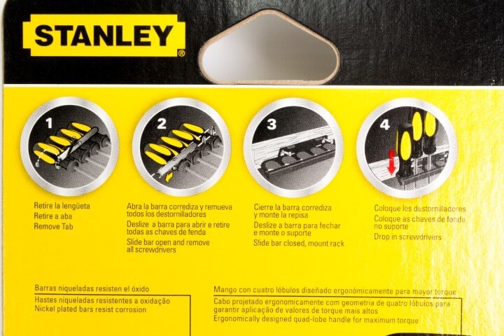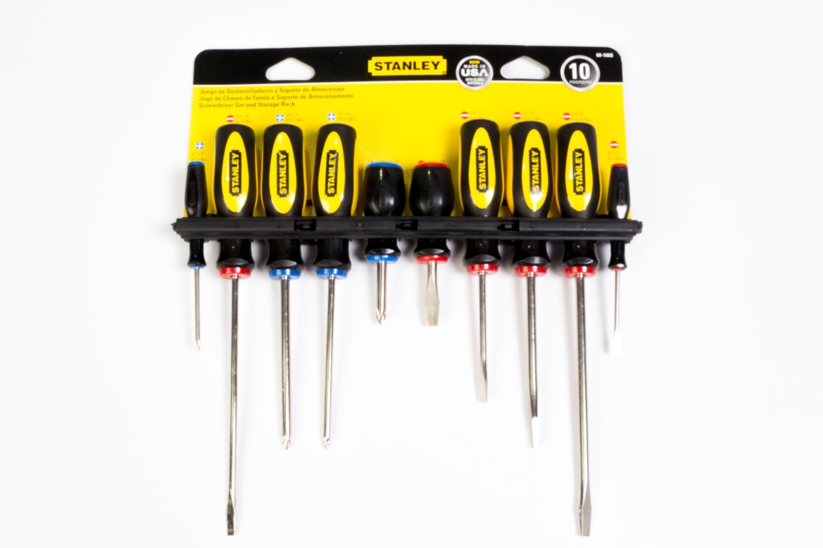 10 Piezas · Contenido · 3/16 x 6 pul · 1/4 x 6 pul · 1/4 x 4 pul · 3/16 x 3 pul · 1/8 x 2 pul · 1/4 x 1-1/2 pul · #3 x 1-1/2 pul · #0 x 2 pul · #1 x 4 pul · #2 x 4 pul. Mangos con cuatro lóbulos diseñados ergonómicamente para mayor torque y comodidad. Mangos codificados por colores facilitando la rápida identificación del destornillador. Barras de aleación de acero termotratado para mayor duración. Barras niqueladas resistentes al óxido. Punta reforzada anti-deslizante.